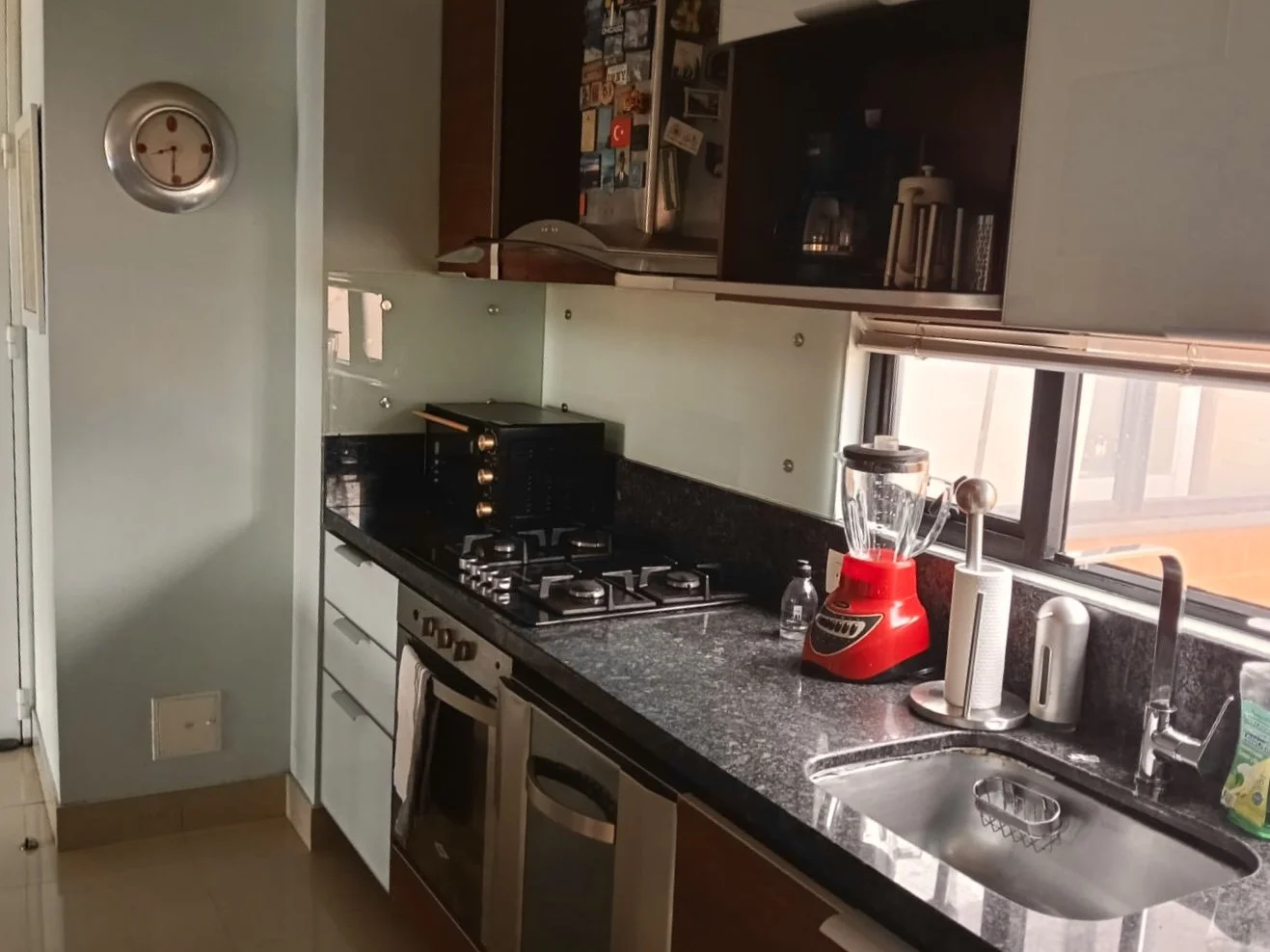 La cocina es abierta con zona de lavandería.